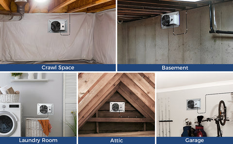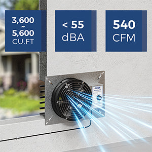VentirPro 540 uses an 8.7-inch aerofoil fan, generating 540 CFM flow, to provide more efficient ventilation, and cover space up to 5600 cu. ft. Assists you in controlling the temperature and humidity levels of your space, making your crawlspace safe and comfortable, ideal for the basement, attic, garage, and any space where air circulation is required.
