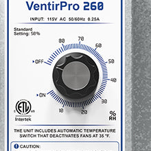 Key Features Built-in dehumidistat and freeze protection thermostat. Operating humidity: 5%-80%RH, this High-Flow Powered Ventilator Fan will turn ON/OFF automatically with set Humidity % Level. The Dehumidistat control will not operate if the freeze protection thermostat senses low outdoor temperatures (35°F/3°C. ).